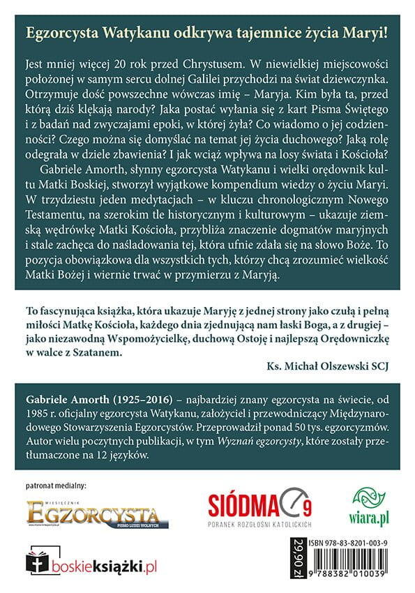 Gabriele Amorth, słynny egzorcysta Watykanu i wielki orędownik kultu Matki Boskiej, stworzył wyjątkowe kompendium wiedzy o życiu Maryi. W trzydziestu jeden medytacjach – w kluczu chronologicznym Nowego Testamentu, na szerokim tle historycznym i kulturowym – ukazuje ziemską wędrówkę Matki Kościoła, przybliża znaczenie dogmatów maryjnych i stale zachęca do naśladowania tej, która ufnie zdała się na Słowo Boże.