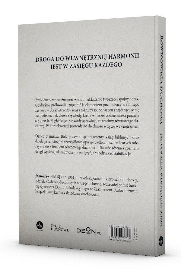 Ojciec Stanisław Biel, przywołując fragmenty ksiąg biblijnych oraz dzieła psychologów, szczegółowo opisuje okoliczności, w których mierzymy się z brakiem równowagi duchowej. Ukazuje również rozmaite drogi wyjścia, jakimi możemy podążyć, aby odzyskać stabilizację.