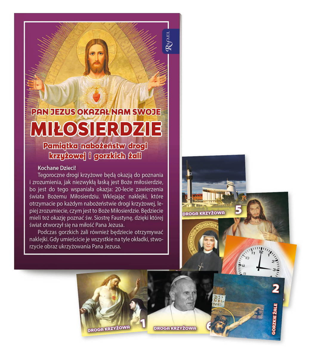 Tegoroczne drogi krzyżowe będą okazją do poznania i zrozumienia, jak niezwykłą łaską jest Boże miłosierdzie, bo jest do tego wspaniała okazja: 20-lecie zawierzenia świata Bożemu Miłosierdziu. Wklejając naklejki, które otrzymacie po każdym nabożeństwie drogi krzyżowej, lepiej zrozumiecie, czym jest to Boże Miłosierdzie. Będziecie mieli też okazję poznać św. Siostrę Faustynę, dzięki której świat otworzył się na miłość Pana Jezusa.