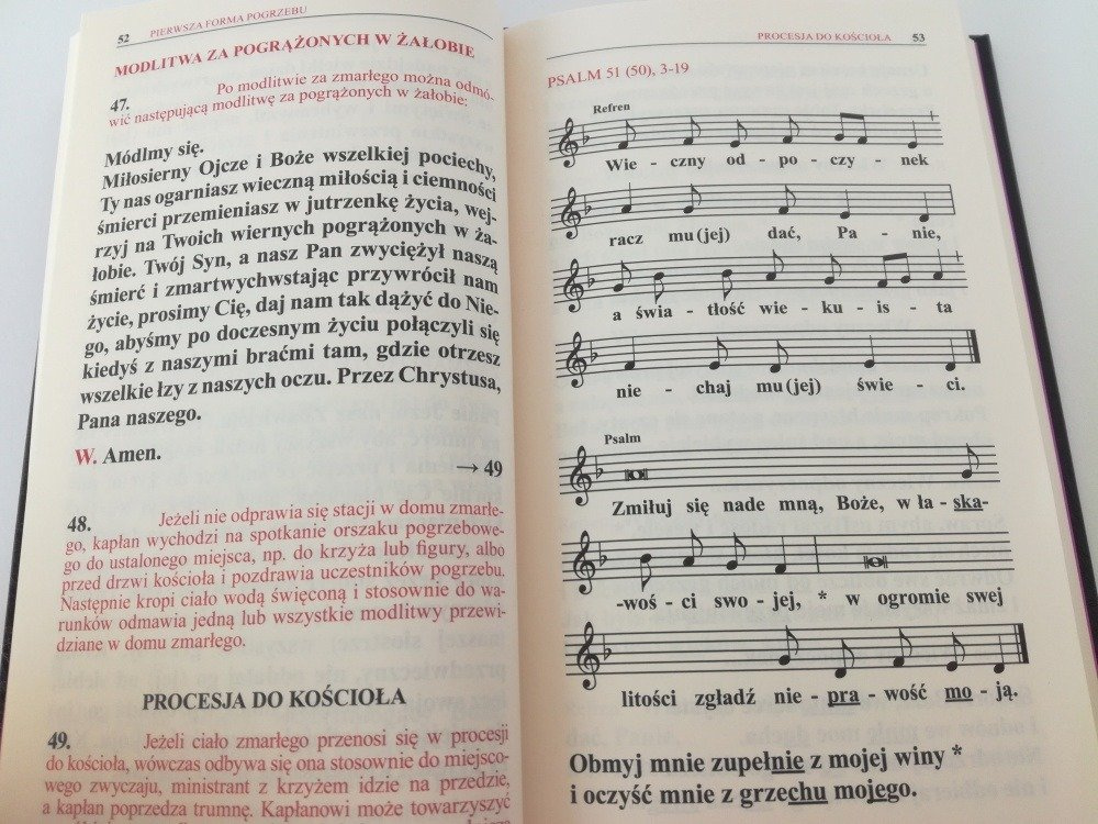 Posługa podczas uroczystości pogrzebowych z takim obrzędem staje się o wiele prostsza.
