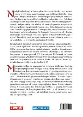 „Nie byłoby królestwa w Polsce, gdyby nie chrzest Mieszka I oraz ustanowienie w 1000 roku hierarchicznego ładu polskiego Kościoła” – pisze prof. Grzegorz Kucharczyk, autor wielu poczytnych książek historycznych. Zjednoczenie ziem polskich pod berłem królewskim przez Bolesława Chrobrego w roku 1025 było dowodem wielkości państwa oraz jego suwerenności. Od początków nasi władcy, tak samo ich poddani, zorientowani byli na współpracę z papieskim Rzymem, a rola Kościoła jako gwaranta nie tylko szerzenia i pogłębiania nauki ewangelicznej, ale także jedności narodowej nigdy nie była podważana. Aż do czasów komunistycznych i do dnia dzisiejszego, kiedy władza oświadcza wprost, że będzie katolików „opiłowywać”. Przy okazji redukuje się do minimum uczciwą edukację historyczną w szkołach – są to wszystko działania antypolskie. Ta książka jest natomiast znakomitym narzędziem do umacniania patriotyzmu oraz uzupełniania wiedzy o państwie polskim, które przez ponad 800 lat było monarchią. Autor, świetnie władający językiem literackim, dokonuje syntezy panowania naszych królów od Chrobrego aż po Królestwo Kongresowe. A nawet po wiek XX, bowiem prof. Kucharczyk na koniec słusznie stwierdza: „Mieliśmy szczęście żyć w czasach, gdy naszą wspólnotę umacniali dwaj niekoronowani królowie Polski – bł. kardynał Stefan Wyszyński, Prymas Polski, oraz św. Jan Paweł II”. Monarchia wydaje się przestarzałym systemem rządzenia, choć nie wszyscy są tego zdania. Z drugiej jednak strony, najwspanialsze czasy i największe dokonania naszego narodu przypadają właśnie na okresy rządów wybitnych władców koronowanych. Jakże przyjemnie o tym się czyta… Silna monarchia gwarantowała bezpieczeństwo i dobrobyt obywateli oraz rozwój kraju, gdy współczesne systemy demokratyczne nadzwyczaj łatwo ulegają manipulacji. Mogą też szybko przeradzać się w tyranię lub osłabiać państwo; tak było zresztą niegdyś ze słynną demokracją szlachecką. A co dziś dzieje się z demokracją? Czytając tę książkę, zaczynamy marzyć: nie ma to jak dobry i sprawiedliwy król… A jak nie król, to przynajmniej prezydent i premier… Jak się jednak okazuje, o nich jeszcze trudniej niż o godziwego króla.