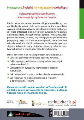 Każda mama wie, że wychowanie chłopca to wielkie wyzwanie. Nie każda jednak zdaje sobie sprawę, że jest osobą, która wywiera największy wpływ na kształtowanie się jego osobowości i może przesądzić o jego życiowym sukcesie. Kevin Leman, autor bestsellera Jak wychowywać dziecko i nie oszaleć, podpowiada mamom, co robić, aby ten wpływ był jak najbardziej pozytywny. Jego książka skierowana jest do mam chłopców w każdym wieku, bo choć kształtowanie osobowości rozpoczyna się już w kołysce, to nigdy nie jest za późno, by dokonać pozytywnych zmian w swoim podejściu do wychowania. Dzięki zawartym w tej książce poradom dowiesz się m.in.