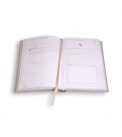 Dziennik posiada twardą oprawę z gumką w gustownych odcieniach beżu z subtelnymi, kwiatowymi motywami. Całość utrzymano w zachwycającej szacie graficznej, by rozważanie Słowa Bożego stało się wyjątkowym przeżyciem - każdego dnia!