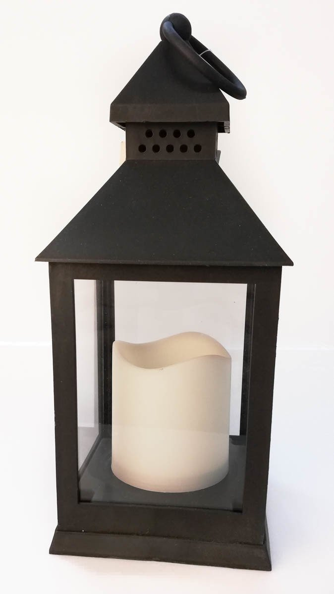 Wielobarwna plastikowa latarnia z wbudowaną świecą LED jest stylową ozdobą ogrodu lub tarasu.
