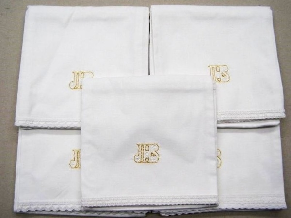 - Służy jako podkład pod kielich, patenę i cyborium, chroniąc je przed zanieczyszczeniem.