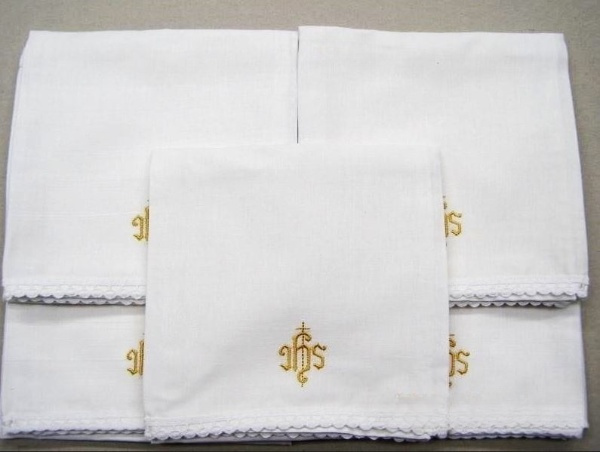 - Korporał z motywem IHS i złotym krzyżem, jest bardzo cenionym elementem w liturgii katolickiej.