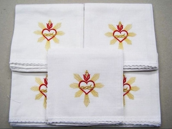 - Korporał ozdobiony jest ozdobnym haftem z motywem Serca Jezusa.