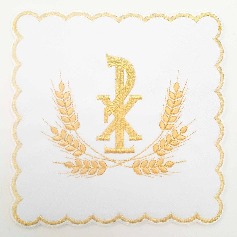 Ta haftowana palka z motywem PX i kłosów w kolorze białym to piękny i pełen symboliki element bielizny kielichowej. Idealnie nadaje się do użytku podczas każdej Mszy Świętej, przypominając o Chrystusie jako Chlebie Życia. Jej klasyczna biel i bogata symbolika będą stanowiły godne uzupełnienie wyposażenia ołtarza.