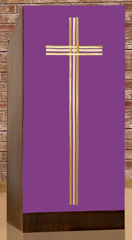 Serweta na lektorium haftowana z centralnie umieszczonym dużym krzyżem. Produkt wykonany z wysokiej jakości tkaniny gładkiej.