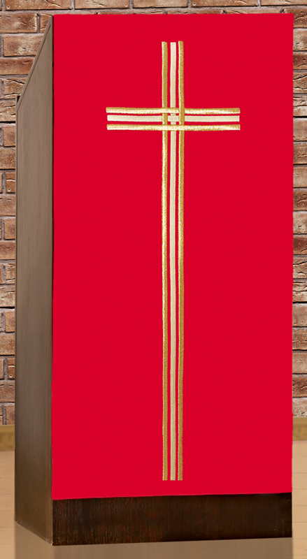 Serweta na lektorium haftowana z centralnie umieszczonym dużym krzyżem. Produkt wykonany z wysokiej jakości tkaniny gładkiej.