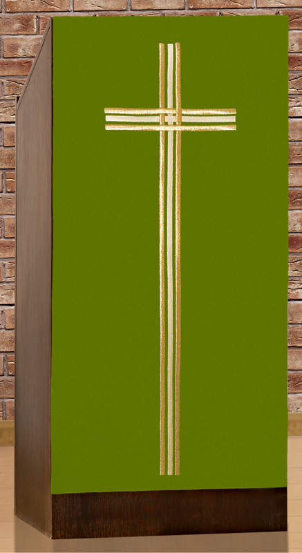 Serweta na lektorium haftowana z centralnie umieszczonym dużym krzyżem. Produkt wykonany z wysokiej jakości tkaniny gładkiej.