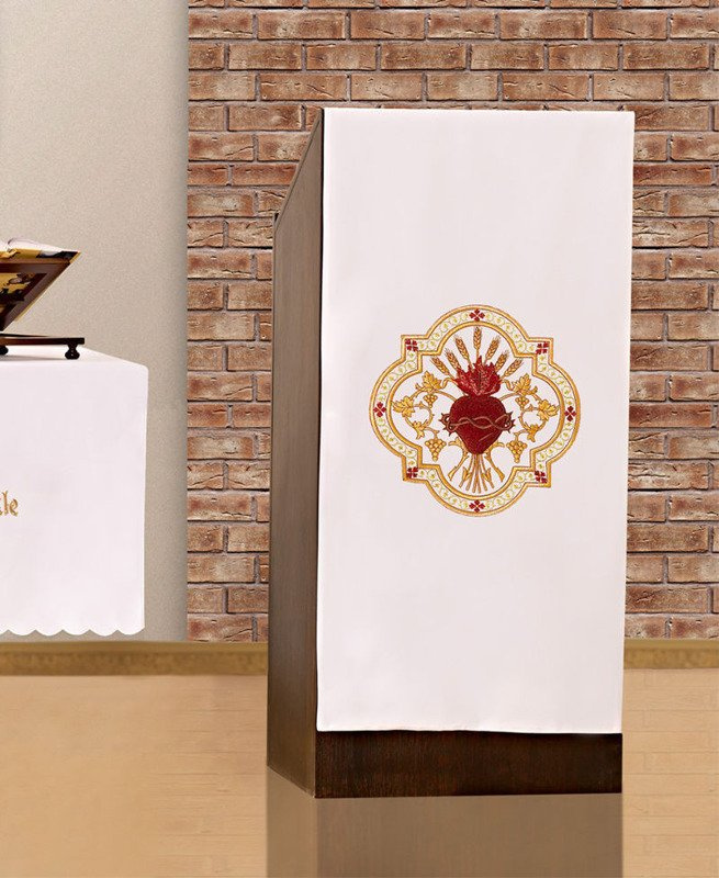 Serweta na lektorium haftowana z motywem Najświętszego Serca Pana Jezusa