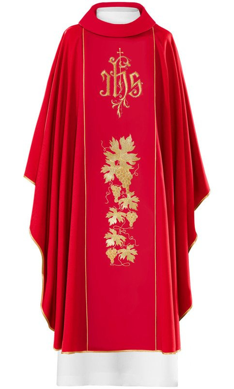 Czerwony ornat haftowany "Symbol IHS ze zdobieniami"