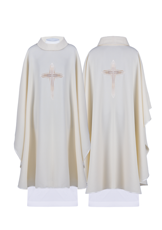 • Ornat z haftem w kolorze ecru, symbol krzyża.