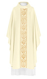 Ornat wykonany z wysokiej jakości tkaniny gładkiej, zdobiony pasem haftowanym. Całość wykończona złoto-satynową lamówką. Dostępny we wszystkich kolorach liturgicznych.