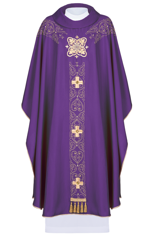 • Fioletowy ornat bogato haftowany zdobiony kamieniami