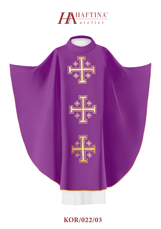 • Fioletowy ornat z haftowanymi krzyżami jerozolimskimi