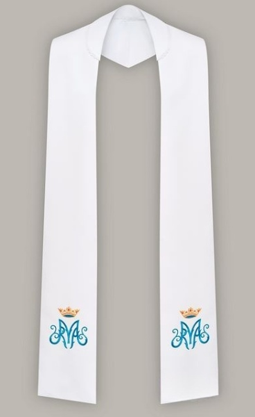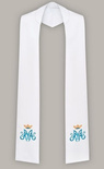 Stuła haftowana z motywem Maryjnym – szeroka jednostronna (biała)