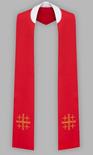 Stuła haftowana z krzyżem jerozolimskim – szeroka jednostronna (czerwona)