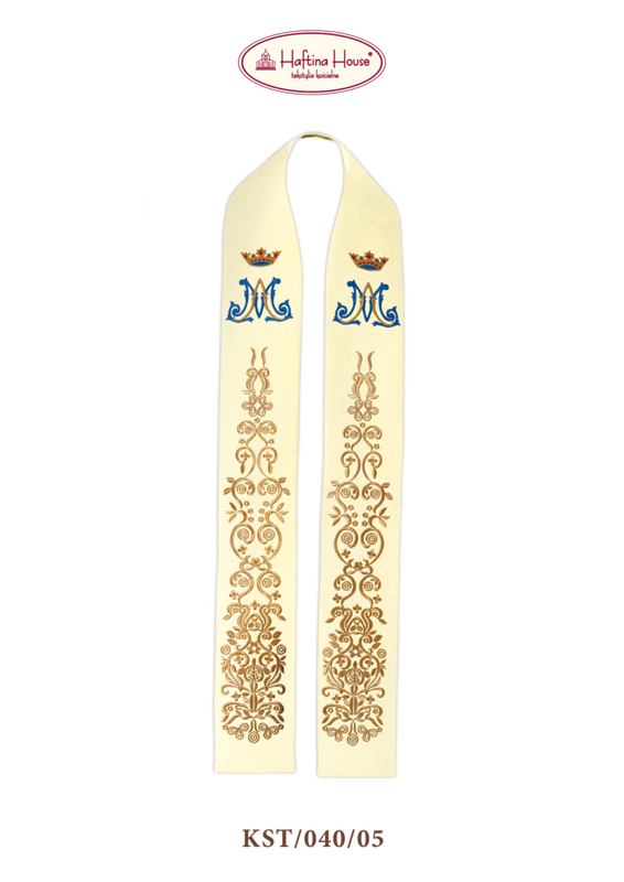 Ecru stuła haftowana z motywem Maryjnym i koroną