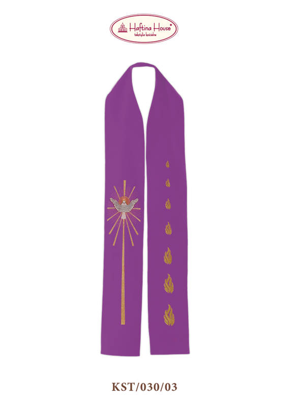 • Fioletowa stuła haftrowana z symbolem Ducha Św. i płomieni
