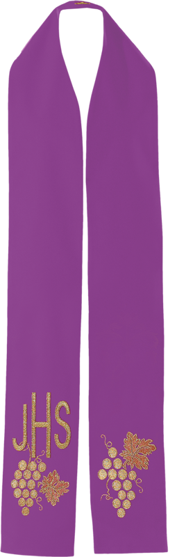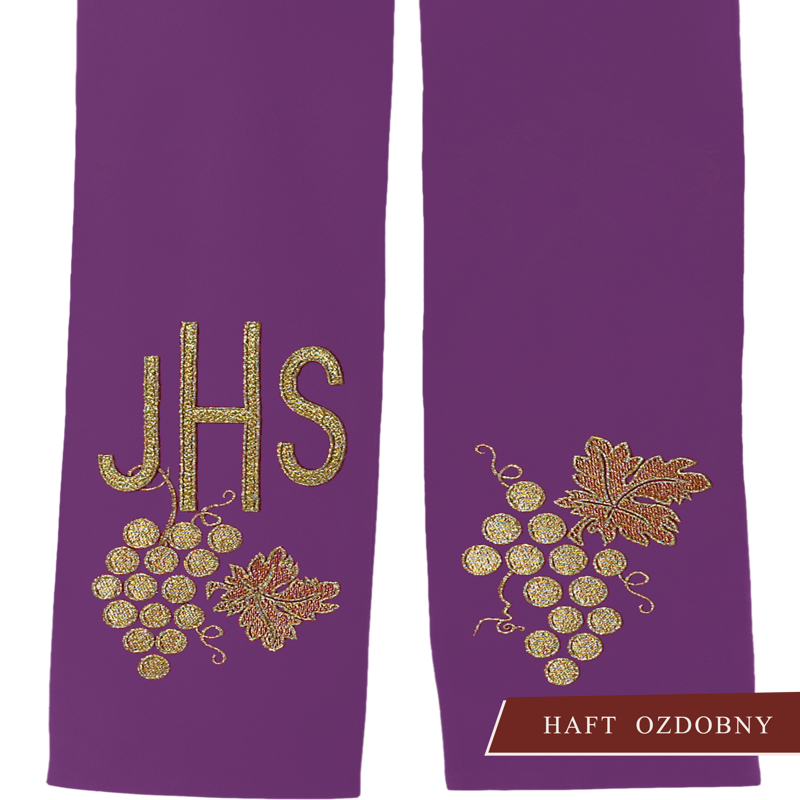 Fioletowa stuła kapłańska haftowana "IHS z winogronami"