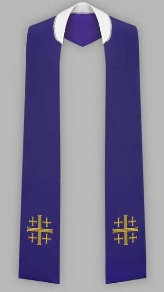 Stuła haftowana z krzyżem jerozolimskim – szeroka jednostronna (fioletowa)