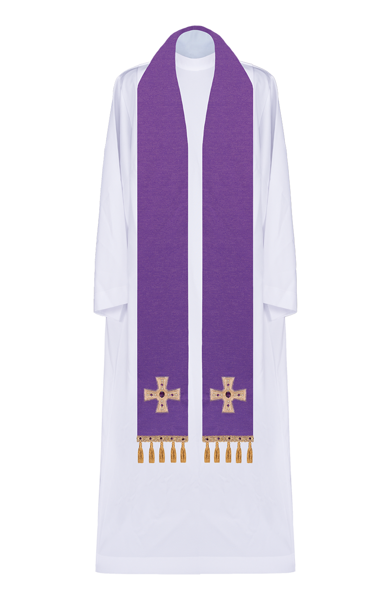 Stuła haftowana wykonana z bardzo wysokiej jakości tkaniny. Stuła zdobiona kamieniami.