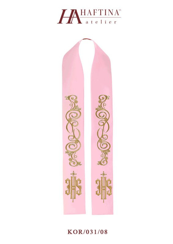 Stuła jednostronna wykonana z wysokiej jakości tkaniny gładkiej, zdobiona haftem z symbolem IHS