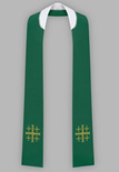 Stuła Haftowana - Wąska Jednostronna z Krzyżem (Zielona)