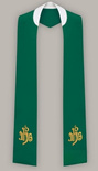 Stuła haftowana z IHS – szeroka jednostronna (zielona)