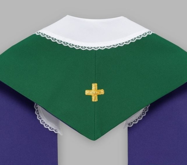 - Stuła jest dostępna w różnych odcieniach zieleni i fioletu.