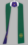Stuła haftowana z krzyżem jerozolimskim – szeroka dwustronna (zielona i fioletowa)