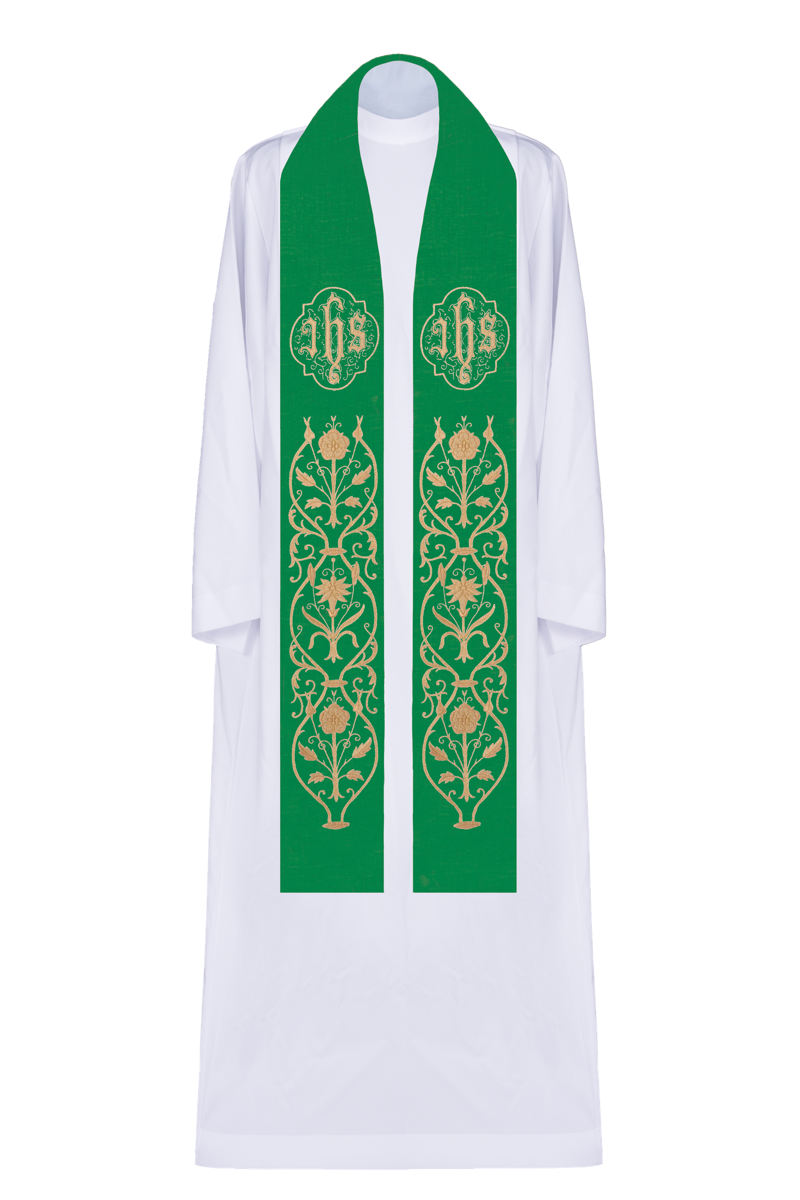 Stuła z symbolem JHS i szerokim ozdobnikiem