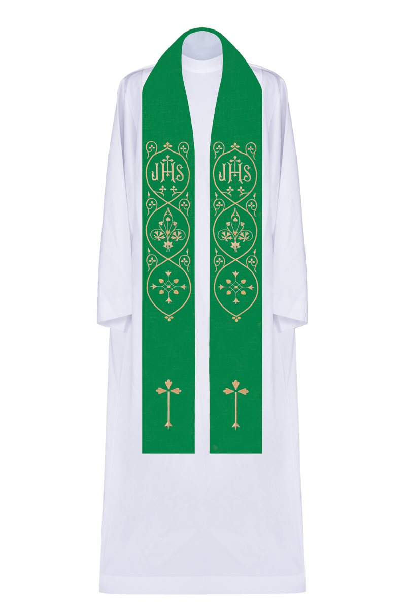 Stuła z symbolem JHS, krzyżami i ozdobnikami