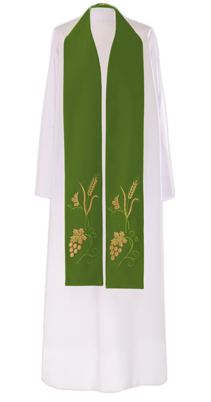 Zielona stuła haftowana "Winogrona i kłosy"