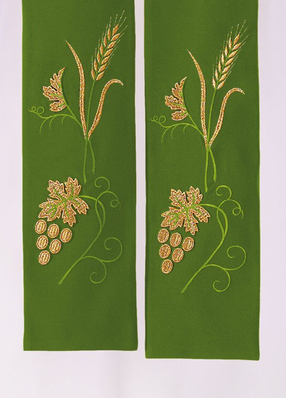 • Zielona stuła haftowana "Winogrona i kłosy"
