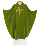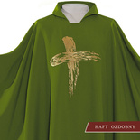 Ornat wykonany z wysokiej jakości tkaniny gładkiej, zdobiony haftowanym symbolem Krzyża. Całość wykończona złoto-satynową lamówką. Dostępny we wszystkich kolorach liturgicznych.