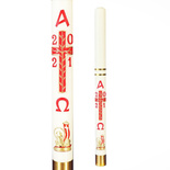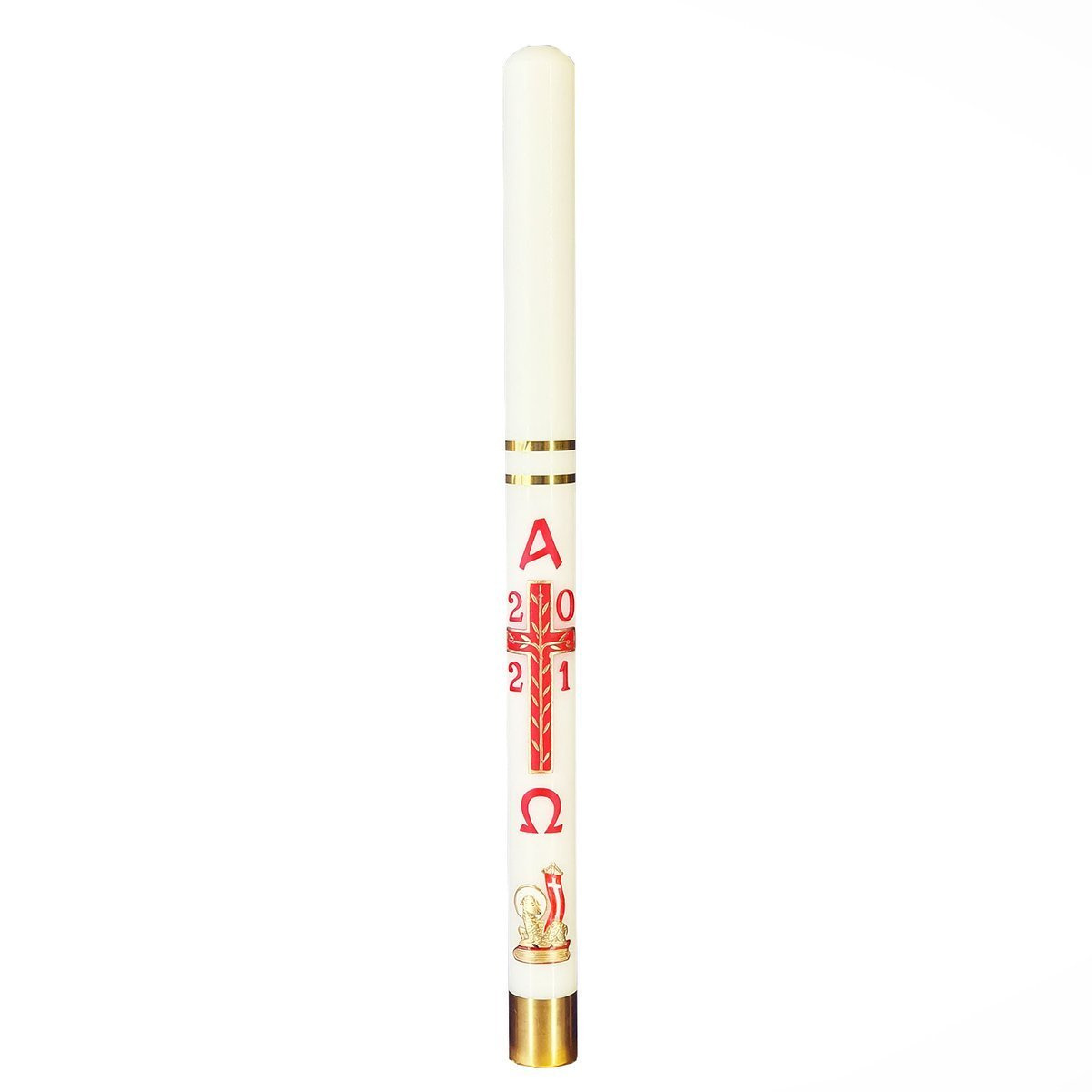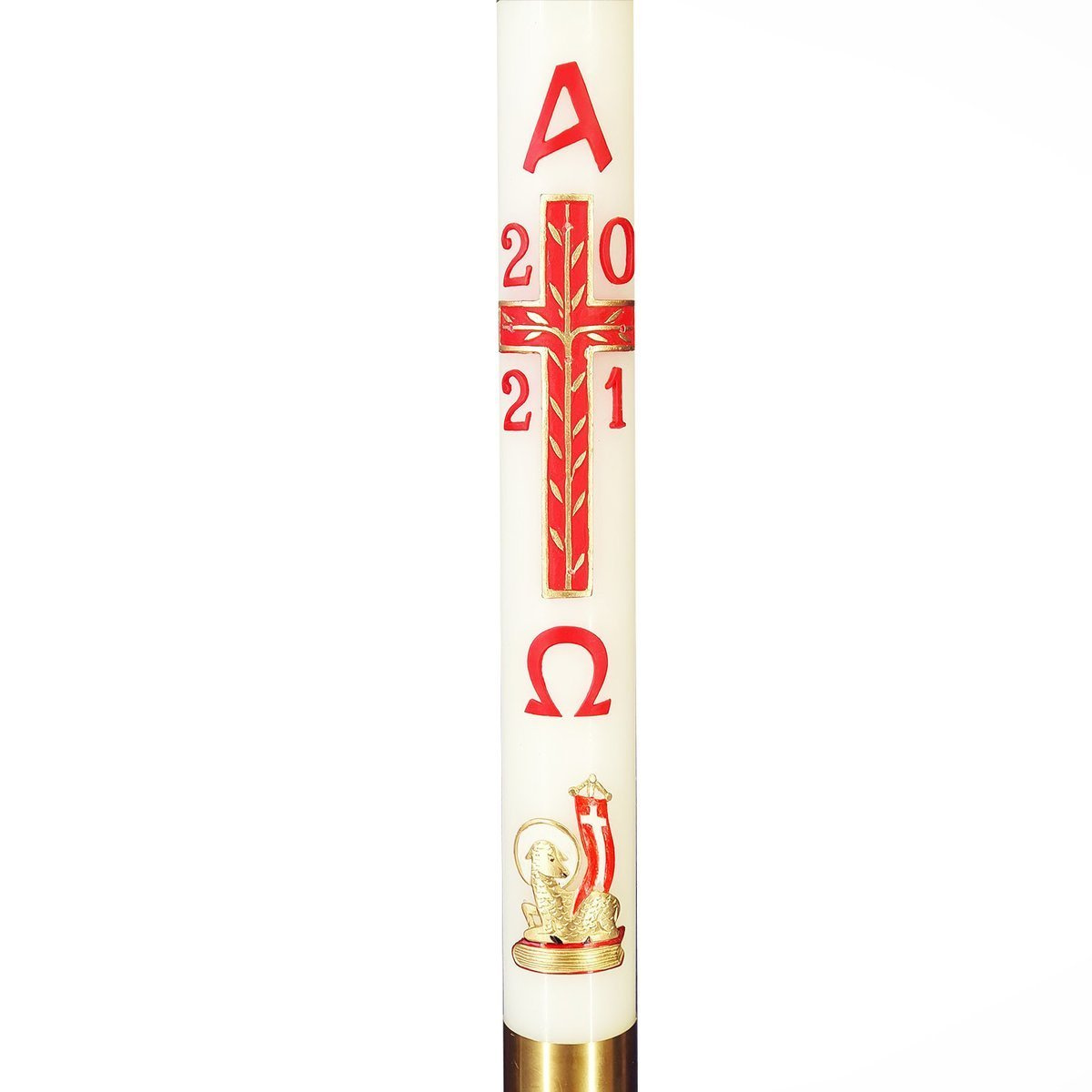 Świeca pakowana jednostkowo. Opakowanie zawiera komplet gron (ziaren, gruszek), a na krzyżu jest nawierconych 5 otworów do ich umieszczenia. Paschał udekorowany jest wypukłymi aplikacjami woskowymi. Dolna opaska jest tuleją mosiężną zwiększającą wytrzymałość mechaniczną jak i nadającą klasyczny wygląd tradycyjnej Świecy Paschalnej.
