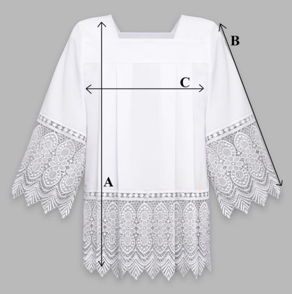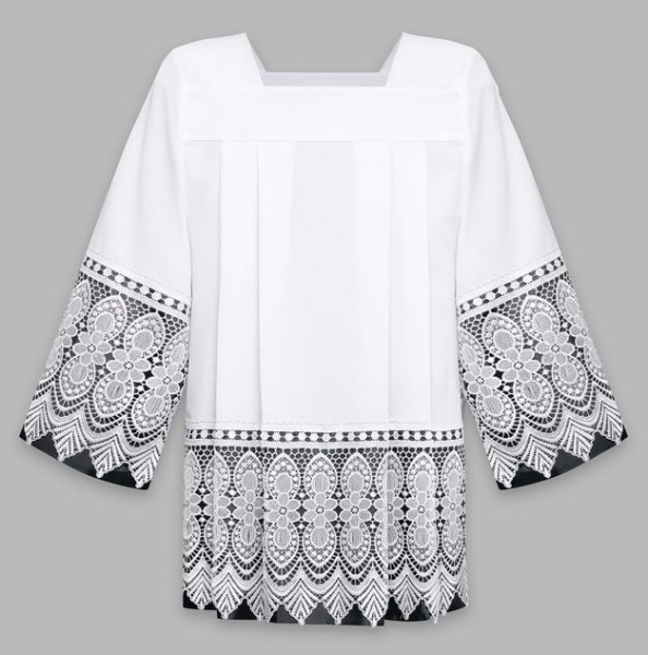 - Gipiura 30 cm – elegancka, ozdobna koronka, dodająca komży uroczystego charakteru.