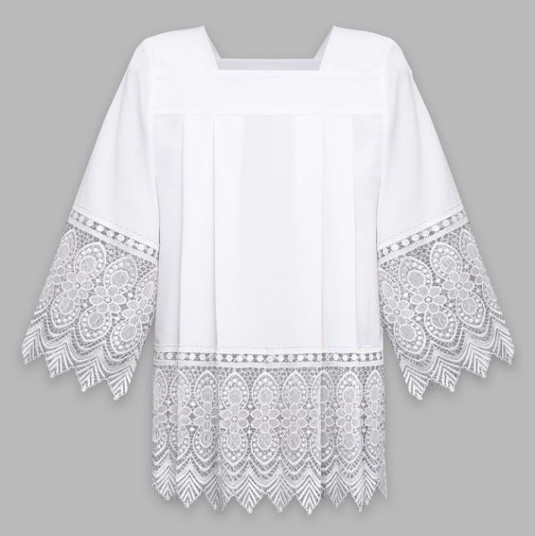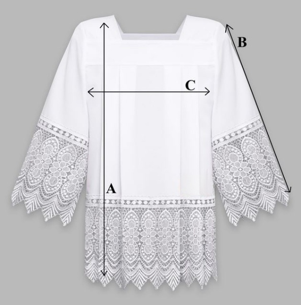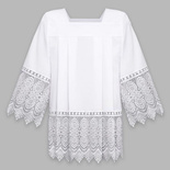 komża z żorżety, komża liturgiczna, komża z gipiurą, komża IHS, strój liturgiczny, szaty liturgiczne, komża kapłańska, komża kościelna, komża biała, komża z haftem, wyposażenie liturgiczne, szaty kapłańskie