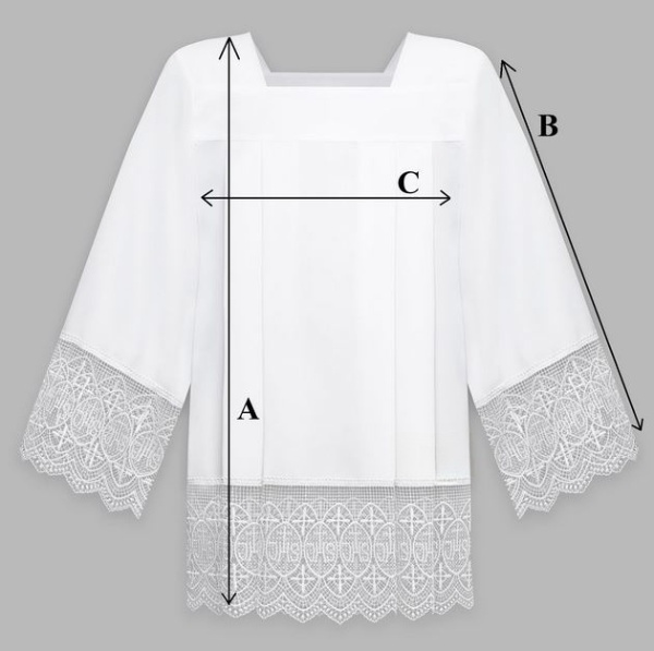 komża z żorżety, komża liturgiczna, komża z gipiurą, komża IHS, strój liturgiczny, szaty liturgiczne, komża kapłańska, komża kościelna, komża biała, komża z haftem, wyposażenie liturgiczne, szaty kapłańskie