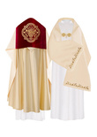 Welon naramienny, strój liturgiczny wykonany z wysokiej jakości tkaniny satynowej, zdobiony bogatym haftem. Zapinany na eleganckie haftki z łańcuszkiem, posiada także kieszenie na dłonie.