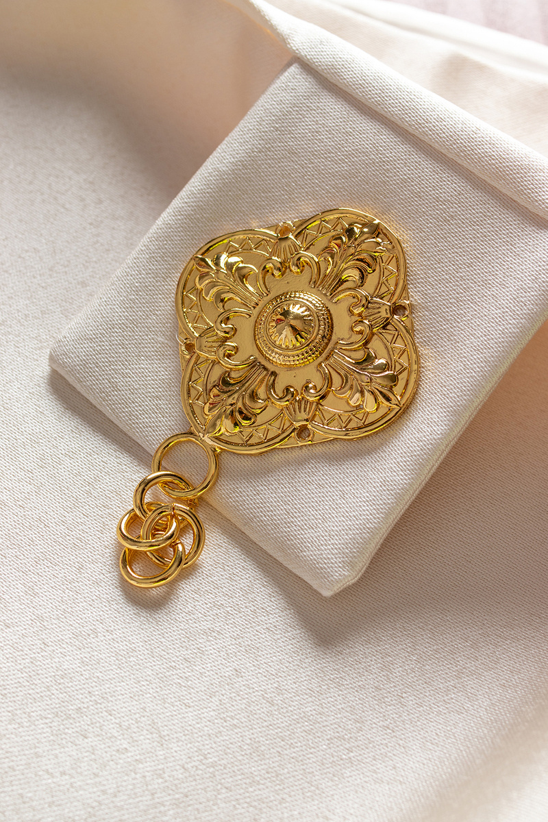 Welon naramienny, strój liturgiczny wykonany z wysokiej jakości tkaniny satynowej, zdobiony bogatym haftem. Zapinany na eleganckie haftki z łańcuszkiem, posiada także kieszenie na dłonie.