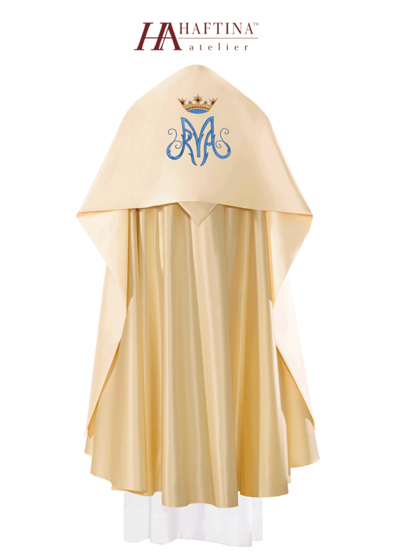 Welon naramienny - strój liturgiczny wykonany z wysokiej jakości tkaniny satynowej, zdobiony bogatym haftem. Zapinany na eleganckie haftki z łańcuszkiem, posiada także kieszenie na dłonie