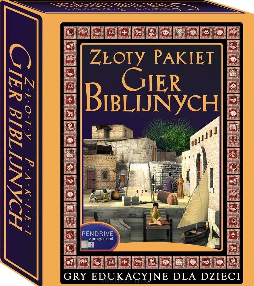 Złoty Pakiet Gier Biblijnych z obwolutą pierwszokomunijną zawiera cztery edukacyjne programy dla tych, którzy chcą lepiej poznać Pismo Święte.