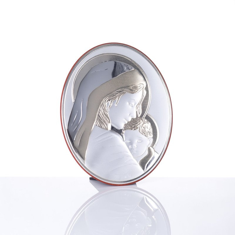 Ikona MB z Dzieciątkiem. Przednia część aluminiowa, tył drewniany. Możliwość powieszenia lub postawienia.