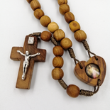 Różaniec z drzewa oliwnego jest niezwykle lekki i poręczny. Ponadto został wykonany ręcznie z najwyższą starannością, aby zapewnić mu jak największą trwałość. Zarówno paciorki, jak i krzyżyk zrobione są z drzewa oliwnego wysokiej jakości, a połączone są niezwykle trwałym sznurkiem, zakończony Krzyżykiem. Na łączniku znajduje się Matka Boska Częstochowska i Jezus Miłosierny w serduszku. Jedną z zalet jest chociażby to, że taki drewniany różaniec można mieć przy sobie praktycznie zawsze i wszędzie, dzięki czemu możemy odmówić ulubioną modlitwę w każdej wolnej chwili.