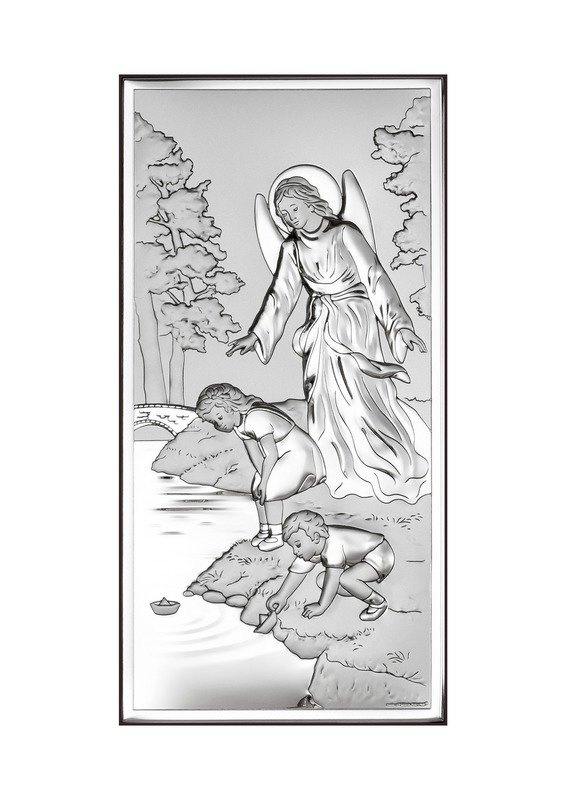 • Srebrny obrazek z wizerunkiem Anioła Stróża nad dziećmi