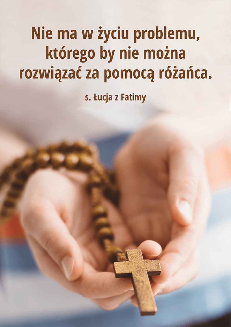 Na plakacie znajduje się inspirujący cytat, który podkreśla znaczenie różańca w życiu wiernych.